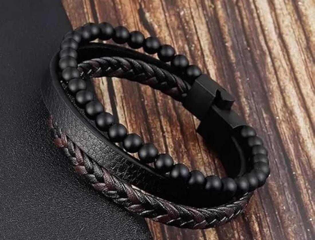 Men’s Black Brown Hunter With Black Round Beads Hand Band
